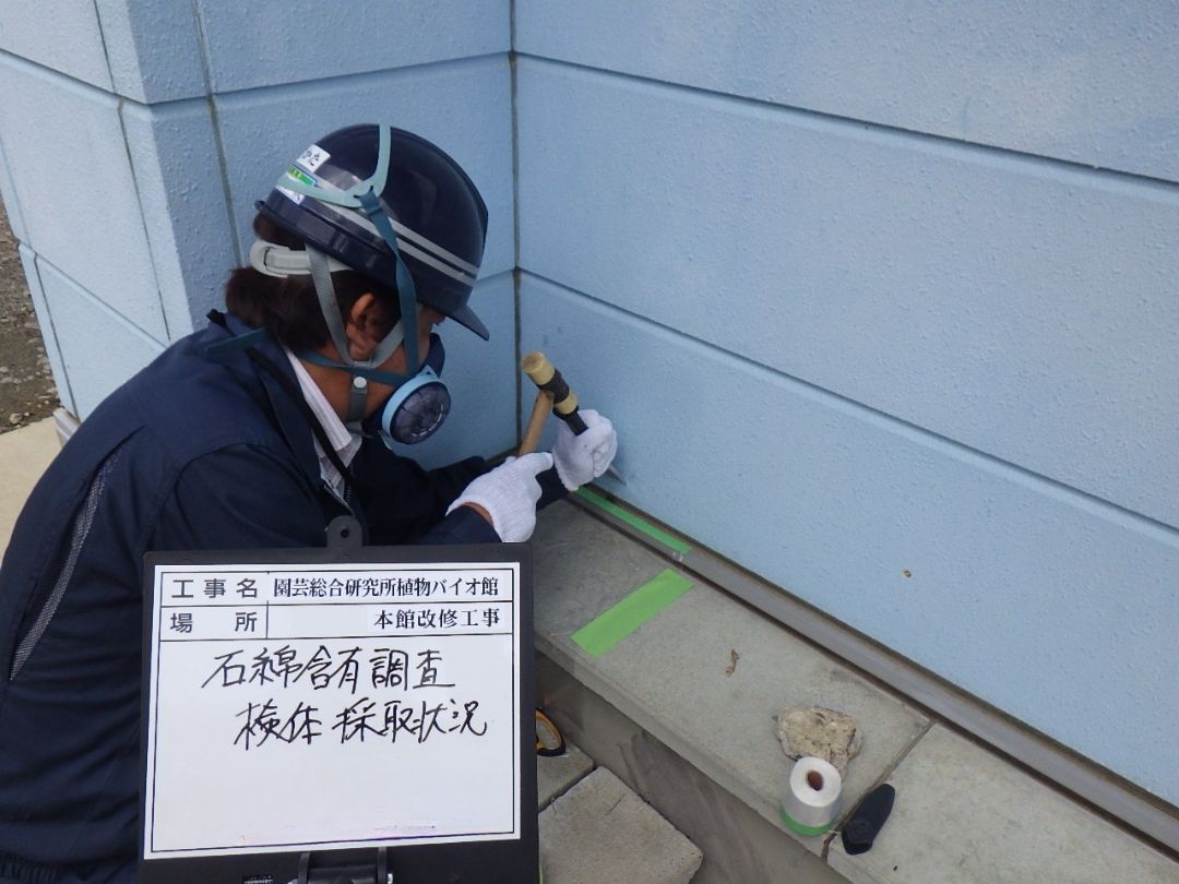 現地において建築物石綿含有建材調査者による事前調査を行います 。